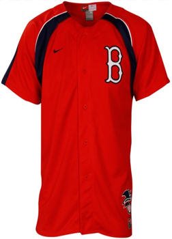 This youth Boston Red Sox baseball jersey by Nike features full button front, just like the real jerseys. Jersey is team color mesh and has has logo embroidery patch left chest and contrasting shoulder stripes. 100% polyester.