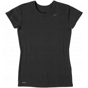 Womens Dri-FIT Performance T-Shirts... World Class Apparel! NIKE Womens Dri-FIT Performance T-Shirts feature: Lightweight t-shirt is 100% polyester Loose fit with stretch fabric for greater mobility Fabric has a soft hand Dri-FIT moisture management technology Ribbed crew neck Short set-in sleeves have an open hem Even hem Longer length (26.125") for a comfortable wear NIKE Swoosh embroidered on the left chest NIKE-FIT screened on the lower right at the hem Colors: Black Bright Gold Dk Green Grey Light Blue Navy Orange Purple Royal Scarlet Shy Pink Vegas Gold White Sizes: Small Medium Large X-Large XX-Large NIKE Apparel...Just Do It!