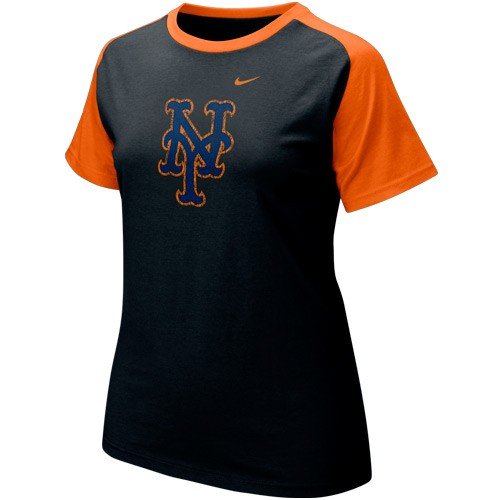 ✓ Cheap Nike New York Mets Ladies Black-Orange Team Logo Raglan T-shirt Buy Now!